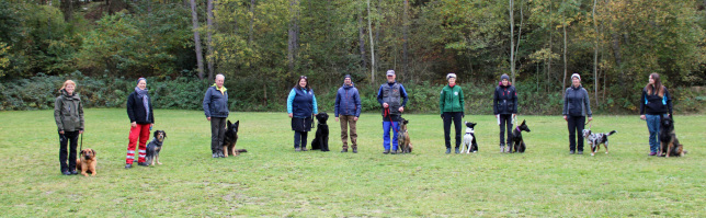 9 Teilnehmer/innen hatten sich zu dem Seminar angemeldet, darunter auch einige Anfänger, die in den Rettungshundesport einsteigen wollen. Die Schwerpunkte des Seminar lagen in der Praxis bei